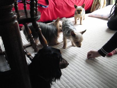 お友達のわんこは、3わんこともヨーキーで、今日はクッキーちゃんとレモンちゃん親子の住むお家におじゃましたのです。別の友人宅で飼われている、クッキーちゃんのもうひとわんの子供であるチョコちゃんも 今日連れられて遊びにきました。