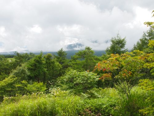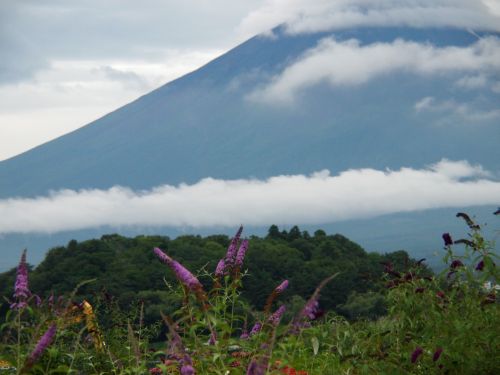 今日は 雲と草花と富士山、八ヶ岳 西湖からの景色です。