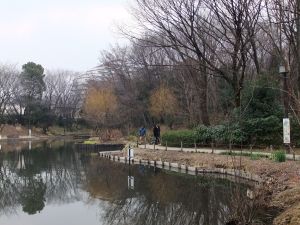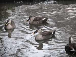 公園内の池で、カモが楽しげに啼いていました。