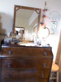 私だけの場所といえるのは少ないけれど、ドレッサーとして使用している 別々に購入した鏡とアンティークのたんすは、私のお気に入りです。
