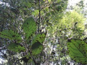 遊歩道の両端が、苔むした緑のビロードをのせて、またその上を 濃淡の茶色絵の具が点在するかのように枯葉が重なり合い、細長ーい額縁のふち飾りを成していた。