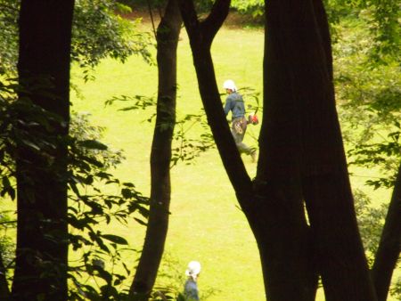 奥の広場では、働くおじさん おにいさんが、チェーンソーを器用に操りながら草刈をしてくれていた。