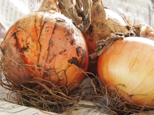 先日 掘りたてのたまねぎとじゃがいもをいただき、その姿の美しさにほれぼれしてしまった。