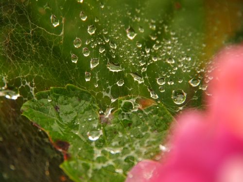 この少しばかり枯れた紫陽花に、くもの糸が張られていて、スワロフスキーのような雨粒が居心地よさそうに留まっていた。