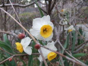 今日公園の片隅に、姿を隠すように水仙が咲いていた。
