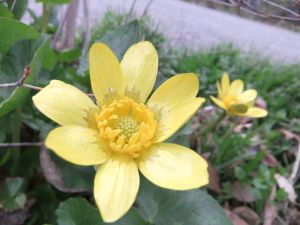 その水仙とおそろいの色で、黄色いお花が隣に咲いていた。