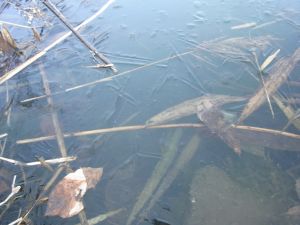 池は凍る。かそけくも水面に散り落ちてゆらいでいた葉っぱも、寒天よせの観、きっちり固められ、微動だにしない。