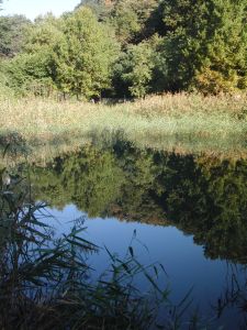 覆い茂る木々が池に映りこんでいるのだが、肉眼で見ると 実際の風景よりもその反映の方が色濃く美しく見えるから不思議だ。