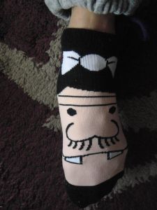 バカボンのパパの靴下を履いて、バレエの足先のように甲を出してみたら、甲高に引っ張られたバカボンのパパの表情が、ほっこりと笑ったようになったのだ!