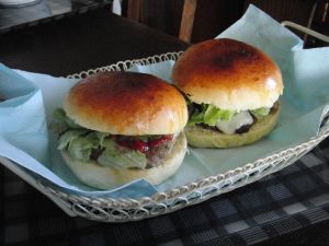 今日の朝食は、作りおきしておいたハンバーグがあったので、バンズらしきものをつくり、ハンバーガーにして食べました。