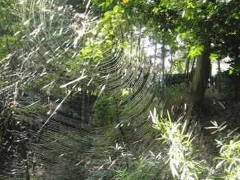 公園の入り口に、それは見事な くもの巣があった。