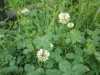 早朝のお散歩の途中、きょろきょろしていたら、しろつめ草に出会った。